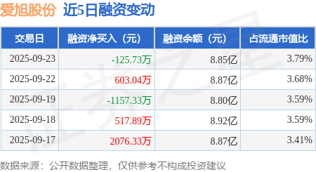 证券之星消息,9月23日,爱旭股份(600732)融资买入5589.68万元,融资偿还5715.41万元,融资净卖出125.73万元,融资余额8.85亿元。