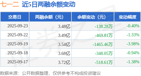 证券之星消息,9月23日,七一二(603712)融资买入3557.42万元,融资偿还3700.92万元,融资净卖出143.49万元,融资余额3.46亿元。