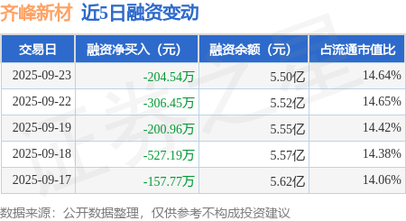证券之星消息,9月23日,齐峰新材(002521)融资买入561.82万元,融资偿还766.36万元,融资净卖出204.54万元,融资余额5.5亿元。