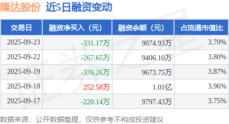 证券之星消息,9月23日,隆达股份(688231)融资买入238.4万元,融资偿还569.57万元,融资净卖出331.17万元,融资余额9074.93万元。