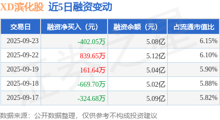 证券之星消息,9月23日,XD滨化股(601678)融资买入2270.48万元,融资偿还2672.53万元,融资净卖出402.05万元,融资余额5.08亿元,近20个交易日中有12个交易日出现融资净买入。