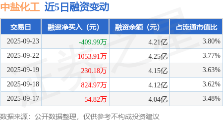 证券之星消息,9月23日,中盐化工(600328)融资买入1537.29万元,融资偿还1947.29万元,融资净卖出409.99万元,融资余额4.21亿元,近20个交易日中有14个交易日出现融资净买入。