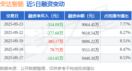 证券之星消息,9月23日,安达智能(688125)融资买入508.01万元,融资偿还1062.09万元,融资净卖出554.09万元,融资余额9064.45万元,近20个交易日中有11个交易日出现融资净买入。