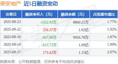 证券之星消息,9月23日,荣安地产(000517)融资买入627.64万元,融资偿还1980.57万元,融资净卖出1352.93万元,融资余额8860.21万元,近20个交易日中有11个交易日出现融资净买入。