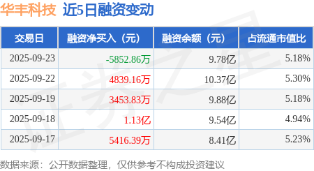 证券之星消息,9月23日,华丰科技(688629)融资买入2.22亿元,融资偿还2.8亿元,融资净卖出5852.86万元,融资余额9.78亿元。