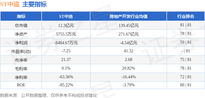 ST中迪2025年中报显示,公司主营收入1.34亿元,同比下降52.39%;归母净利润-8484.67万元,同比下降13.53%;扣非净利润-8069.5万元,同比下降18.84%;其中2025年第二季度,公司单季度主营收入1.34亿元,同比下降45.11%;单季度归母净利润-5583.89万元,同比下降35.34%;单季度扣非净利润-5206.86万元,同比下降46.74%;负债率96.97%,投资收益199.66万元,财务费用6225.08万元,毛利率0.1%。ST中迪(000609)主营业务:以直接投资业务为主,包括直接股权投资业务以及房地产综合开发投资业务等。