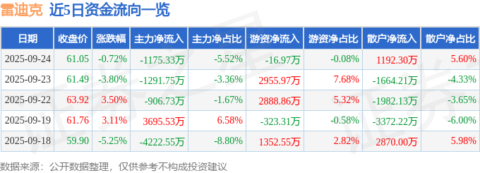 证券之星消息,截至2025年9月24日收盘,雷迪克(300652)报收于61.05元,下跌0.72%,换手率2.93%,成交量3.51万手,成交额2.13亿元。