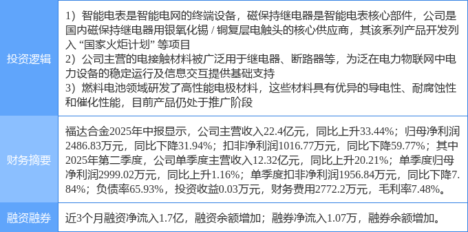 证券之星消息,福达合金9月24日涨停收盘,收盘价20.38元。该股于14点13分涨停,未打开涨停,截止收盘封单资金为7580.22万元,占其流通市值2.75%。