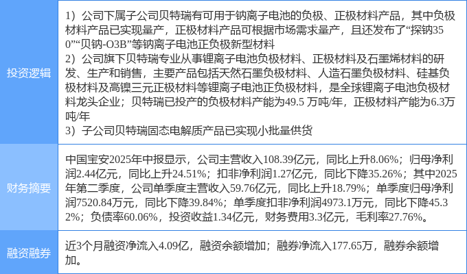 该股为钠电池,固态电池,锂电池概念热股,当日钠电池概念上涨3.02%,固态电池概念上涨2.78%,锂电池概念上涨2.75%。