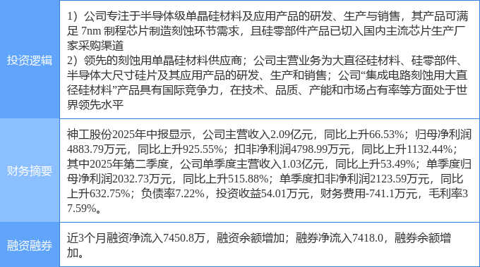 证券之星消息,神工股份9月24日涨停收盘,收盘价44.51元。该股于9点41分涨停,1次打开涨停,截止收盘封单资金为283.49万元,占其流通市值0.04%。