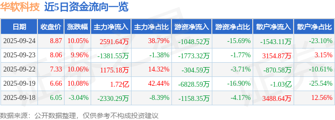 证券之星消息,华软科技9月24日涨停收盘,收盘价8.87元。该股于9点25分涨停,未打开涨停,截止收盘封单资金为3.0亿元,占其流通市值5.53%。