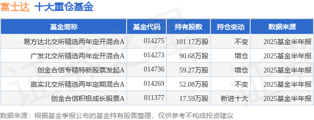 重仓富士达的公募基金请见下表: