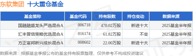 根据2025基金半年报公募基金重仓股数据,重仓该股的公募基金共3家,其中持有数量最多的公募基金为国融基金的国融融盛龙头严选混合A。国融融盛龙头严选混合A目前规模为2.55亿元,最新净值1.9499(9月23日),较上一交易日上涨0.38%,近一年上涨56.85%。该公募基金现任基金经理为周德生。周德生在任的基金产品包括:国融融银灵活配置混合A,管理时间为2023年2月7日至今,期间收益率为-42.58%;