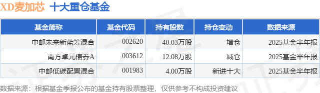 重仓XD麦加芯的公募基金请见下表: