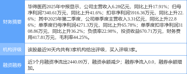 2025年8月24日,开源证券研究员余汝意,聂媛媛发布了对毕得医药的研报《公司信息更新报告:2025H1业绩超预期增长,科学试剂业务表现亮眼》,该研报对毕得医药给出“买入”评级。证券之星数据中心根据近三年发布的研报数据计算,该研报作者对此股的盈利预测准确度为79.61%。