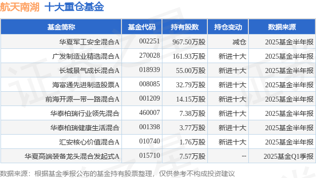 重仓航天南湖的公募基金请见下表: