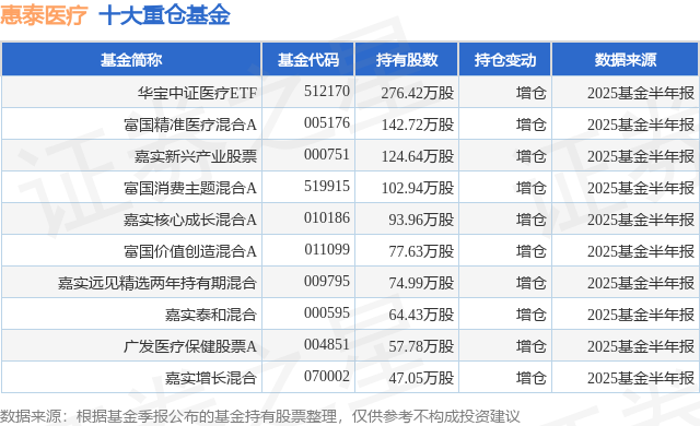 重仓惠泰医疗的前十大公募基金请见下表: