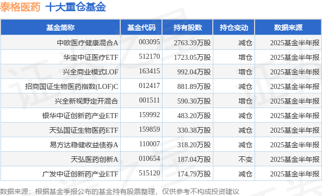 根据2025基金半年报公募基金重仓股数据,重仓该股的公募基金共86家,其中持有数量最多的公募基金为中欧基金的中欧医疗健康混合A。中欧医疗健康混合A目前规模为156.38亿元,最新净值2.0228(9月23日),较上一交易日下跌1.91%,近一年上涨48.76%。该公募基金现任基金经理为葛兰 赵磊。葛兰在任的基金产品包括:中欧明睿新起点混合,管理时间为2018年7月12日至今,期间收益率为81.44%;中欧医疗创新股票A,管理时间为2019年2月28日至今,期间收益率为77.23%。