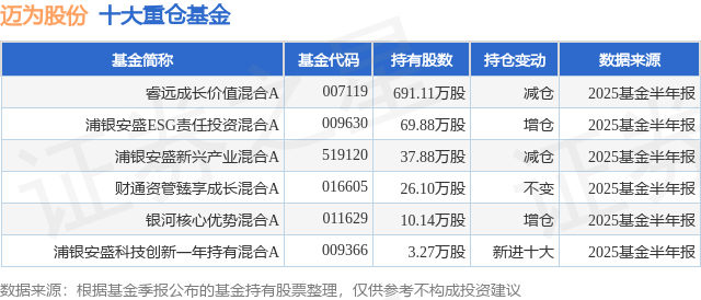 重仓迈为股份的公募基金请见下表: