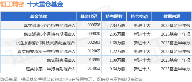 根据2025基金半年报公募基金重仓股数据,重仓该股的公募基金共6家,其中持有数量最多的公募基金为嘉实基金的嘉实稳惠6个月持有期混合A。嘉实稳惠6个月持有期混合A目前规模为8.43亿元,最新净值1.1121(9月23日),较上一交易日下跌0.13%,近一年上涨5.42%。该公募基金现任基金经理为胡永青。胡永青在任的基金产品包括:嘉实策略优选混合,管理时间为2016年12月1日至今,期间收益率为80.55%;嘉实稳固收益债券A,管理时间为2020年3月16日至今,期间收益率为29.26%;嘉实浦惠6个月持有期混合A,管理时间为2020年10月14日至今,期间收益率为13.27%;