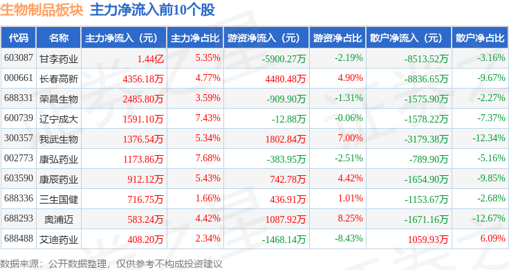 从资金流向上来看,当日生物制品板块主力资金净流入8635.78万元,游资资金净流出1701.55万元,散户资金净流出6934.23万元。生物制品板块个股资金流向见下表: