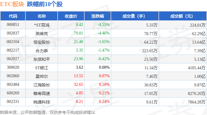 从资金流向上来看,当日ETC板块主力资金净流入4.64亿元,游资资金净流出2.75亿元,散户资金净流出1.89亿元。ETC板块个股资金流向见下表: