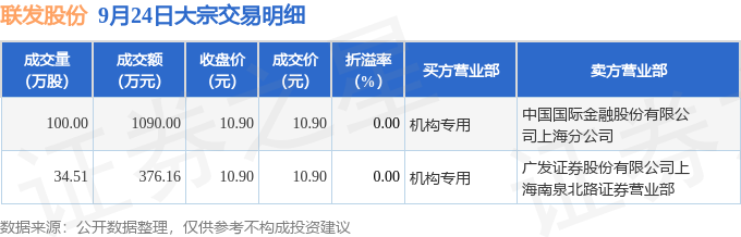 证券之星消息,9月24日联发股份发生大宗交易,交易数据如下:
