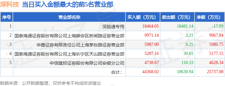 证券之星消息,沪深交易所2025年9月24日公布的交易公开信息显示,深科技(000021)因日涨幅偏离值达到7%的前5只证券登上龙虎榜。此次是近5个交易日内第1次上榜。