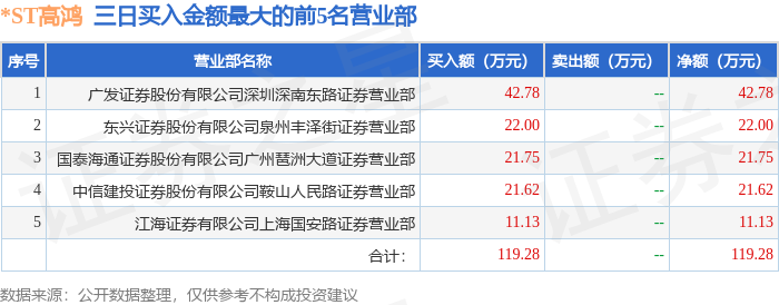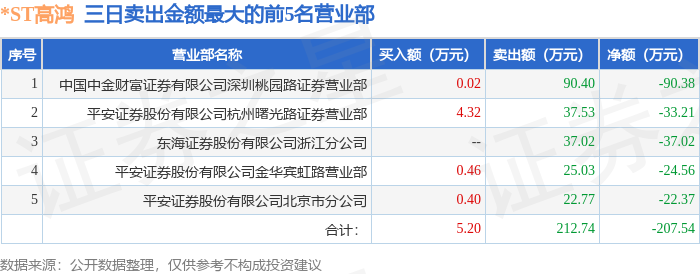 证券之星消息,沪深交易所2025年9月24日公布的交易公开信息显示,*ST高鸿(000851)因连续三个交易日内,跌幅偏离值累计达到12%的ST证券、*ST证券和未完成股改证券登上龙虎榜。此次是近5个交易日内第2次上榜。