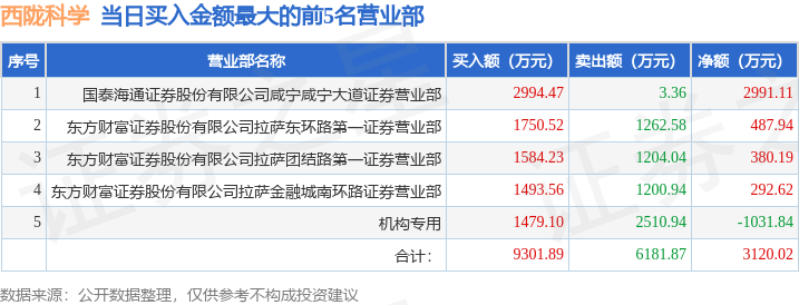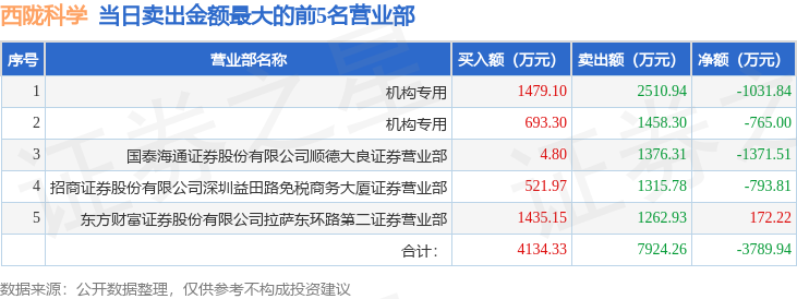 从龙虎榜公布的当日买卖数据来看,机构合计净卖出1796.84万元。咸宁咸宁大道等知名游资榜上有名。(知名游资咸宁咸宁大道一般指国泰海通证券股份有限公司咸宁咸宁大道证券营业部席位,根据市场资料整理,仅供参考)