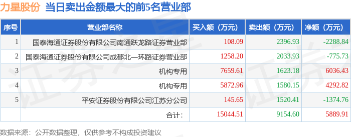 证券之星消息,沪深交易所2025年9月24日公布的交易公开信息显示,力星股份(300421)因日换手率达到30%的前5只证券登上龙虎榜。此次是近5个交易日内第1次上榜。