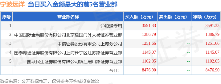 证券之星消息,沪深交易所2025年9月24日公布的交易公开信息显示,宁波远洋(601022)因有价格涨跌幅限制的日换手率达到20%的前五只证券登上龙虎榜。此次是近5个交易日内第2次上榜。