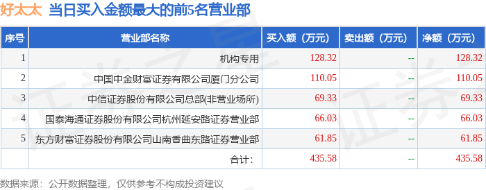 从龙虎榜公布的当日买卖数据来看,机构合计净买入128.32万元。