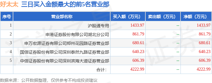 证券小知识:龙虎榜是交易所披露的竞价交易公开信息,现身龙虎榜的个股都是当日最为活跃的个股,是投资者日常重点关注的数据。交易所公布当日买入金额和卖出金额前五名的席位,其中一些席位代表特殊意义,如机构专用席位是指基金专用席位、券商自营专用席位、社保专用席位、券商理财专用席位、保险机构专用席位、保险机构租用席位、QFII专用席位等机构投资者买卖证券的专用通道和席位。深股通专用、沪股通专用为北向资金的交易席位。从龙虎榜数据可以发现和研究机构、游资和散户的资金动向。一些营业部席位经常上榜,市场知名度较高,投资者整理代表散户、游资、量化等不同资金的营业部席位。