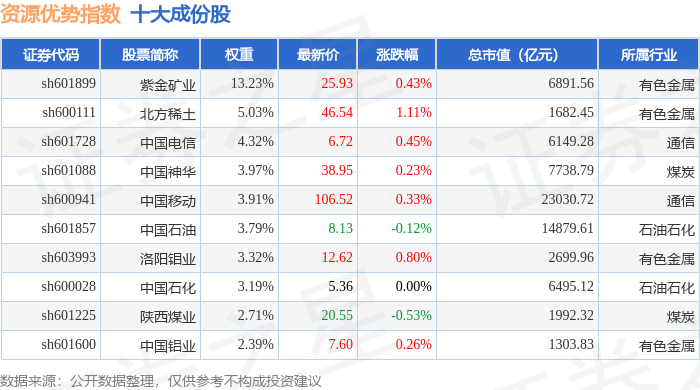 资金流向方面,资源优势(399319)指数成份股当日主力资金净流出合计11.59亿元,游资资金净流入合计4875.19万元,散户资金净流入合计11.1亿元。成份股资金流向详情见下表: