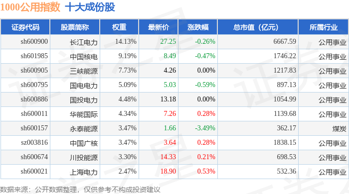 证券之星消息,9月24日,1000公用(399390)指数报收于2586.04点,涨0.01%,成交168.89亿元,换手率0.95%。当日该指数成份股中,上涨的有29家,协鑫能科以9.97%的涨幅领涨,下跌的有12家,永泰能源以3.49%的跌幅领跌。