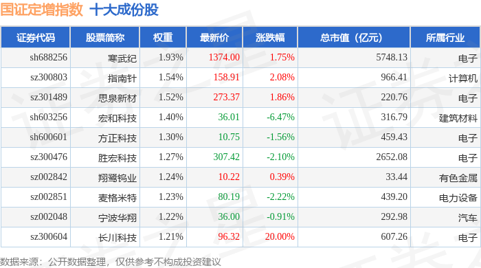 国证定增(399428)指数十大成份股详情如下: