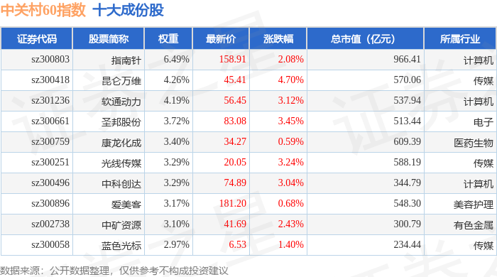 资金流向方面,中关村60(399697)指数成份股当日主力资金净流入合计8.46亿元,游资资金净流出合计8.03亿元,散户资金净流出合计4320.9万元。成份股资金流向详情见下表: