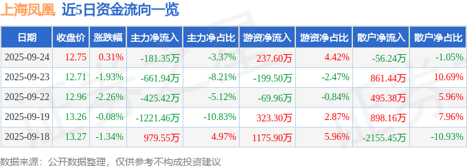 证券之星消息,截至2025年9月24日收盘,上海凤凰(600679)报收于12.75元,上涨0.31%,换手率1.23%,成交量4.23万手,成交额5378.54万元。