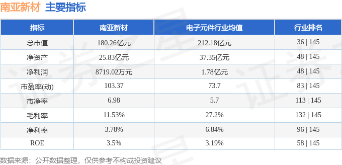 南亚新材2025年中报显示,公司主营收入23.05亿元,同比上升43.06%;归母净利润8719.02万元,同比上升57.69%;扣非净利润8120.23万元,同比上升104.85%;其中2025年第二季度,公司单季度主营收入13.53亿元,同比上升41.69%;单季度归母净利润6606.94万元,同比上升46.21%;单季度扣非净利润6516.57万元,同比上升107.88%;负债率54.02%,投资收益-203.48万元,财务费用203.8万元,毛利率11.53%。南亚新材(688519)主营业务:覆铜板和粘结片等复合材料及其制品的设计、研发、生产及销售。