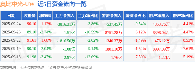 9月24日的资金流向数据方面,主力资金净流出3816.31万元,占总成交额3.86%,游资资金净流出537.45万元,占总成交额0.54%,散户资金净流入4353.76万元,占总成交额4.41%。