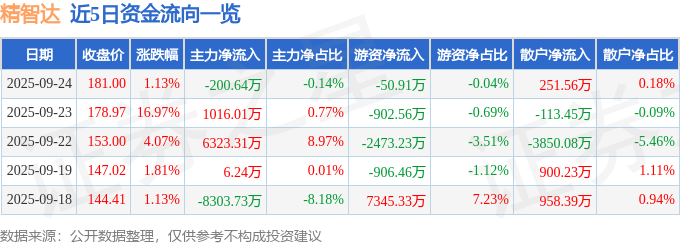 证券之星消息,截至2025年9月24日收盘,精智达(688627)报收于181.0元,上涨1.13%,换手率10.92%,成交量7.9万手,成交额14.02亿元。