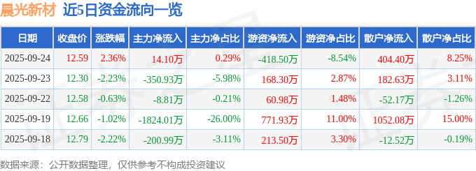 证券之星消息,截至2025年9月24日收盘,晨光新材(605399)报收于12.59元,上涨2.36%,换手率1.26%,成交量3.94万手,成交额4902.14万元。