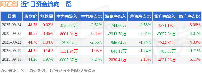 证券之星消息,截至2025年9月24日收盘,阿石创(300706)报收于48.58元,上涨0.02%,换手率25.04%,成交量28.44万手,成交额13.98亿元。
