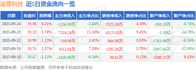 证券之星消息,截至2025年9月24日收盘,迪普科技(300768)报收于19.36元,上涨0.21%,换手率4.51%,成交量18.96万手,成交额3.65亿元。