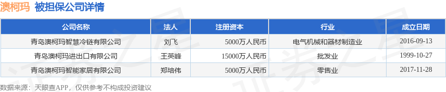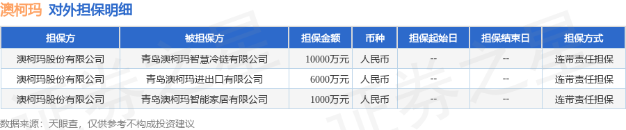 澳柯玛9月23日披露3笔对外担保,被担保公司3家。对外担保明细如下表: