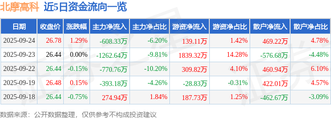 证券之星消息,截至2025年9月24日收盘,北摩高科(002985)报收于26.78元,上涨1.29%,换手率2.1%,成交量3.69万手,成交额9818.72万元。
