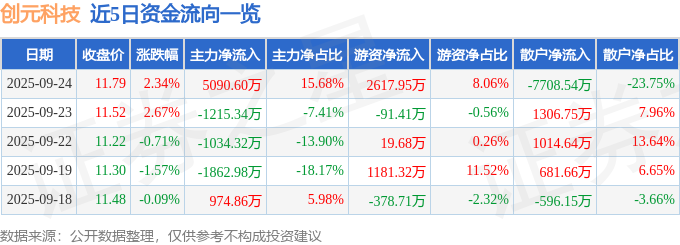 证券之星消息,截至2025年9月24日收盘,创元科技(000551)报收于11.79元,上涨2.34%,换手率5.77%,成交量27.85万手,成交额3.25亿元。