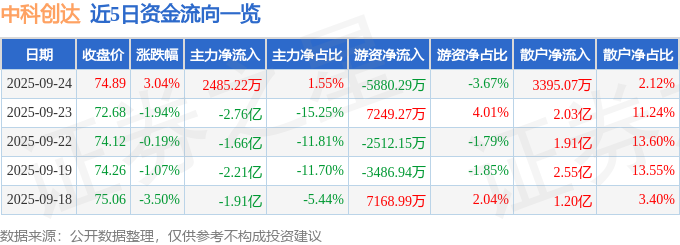 证券之星消息,截至2025年9月24日收盘,中科创达(300496)报收于74.89元,上涨3.04%,换手率5.9%,成交量21.73万手,成交额16.04亿元。