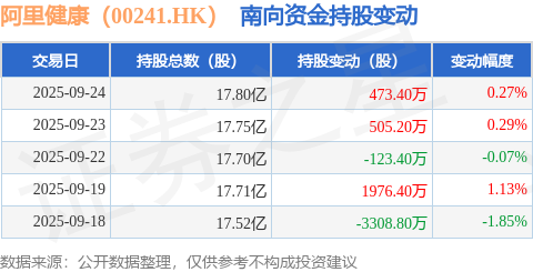 证券之星消息,9月24日南向资金增持473.4万股阿里健康(00241.HK)。近5个交易日中,获南向资金减持的有2天,累计净减持477.2万股。近20个交易日中,获南向资金减持的有11天,累计净减持1.07亿股。截至目前,南向资金持有阿里健康(00241.HK)17.8亿股,占公司已发行普通股的11.03%。